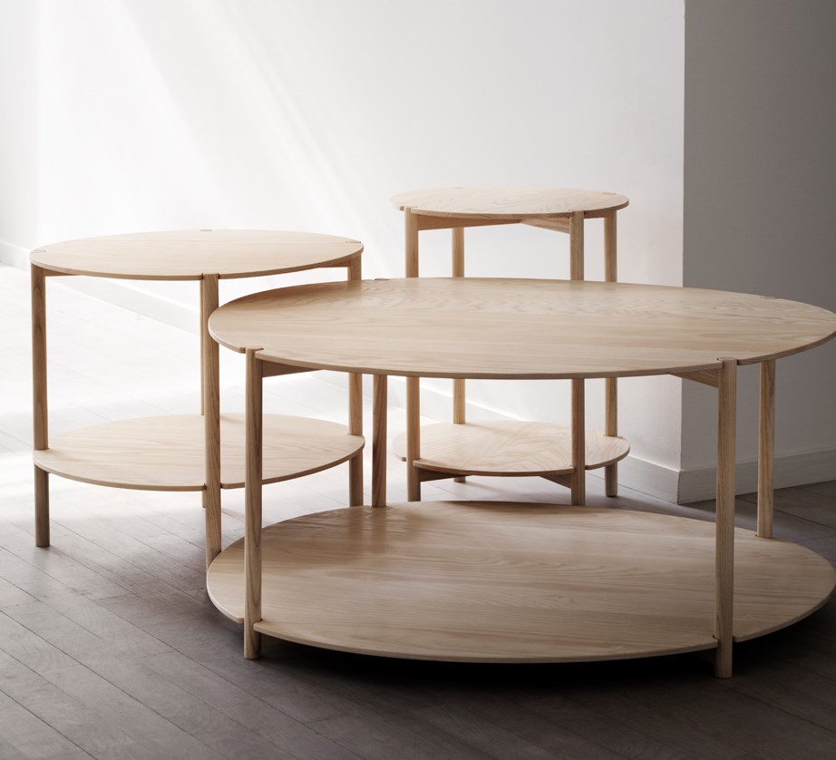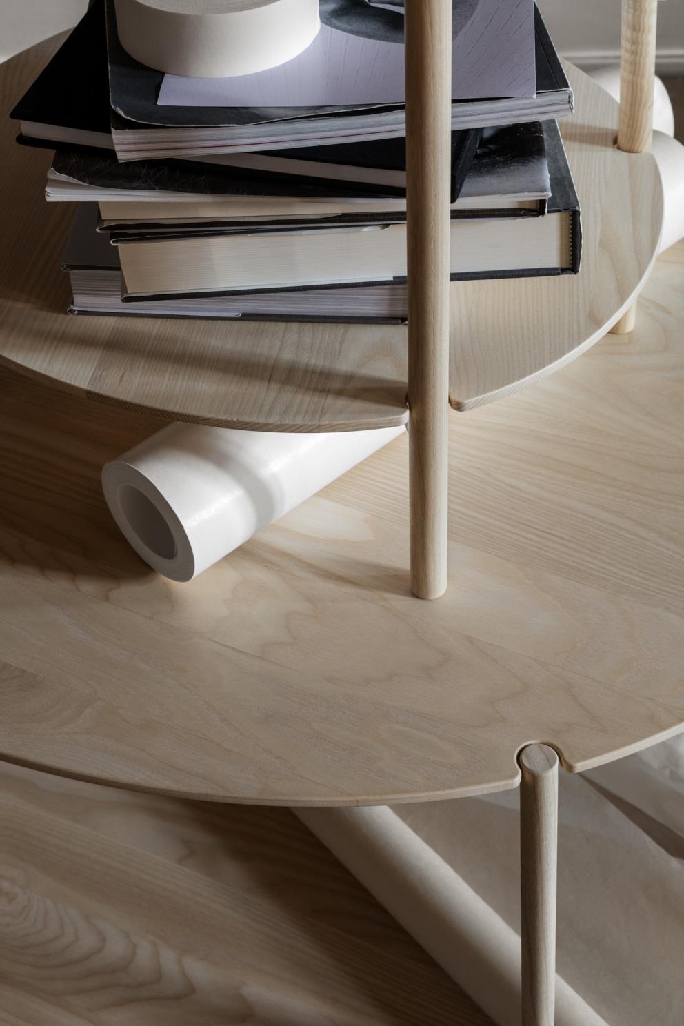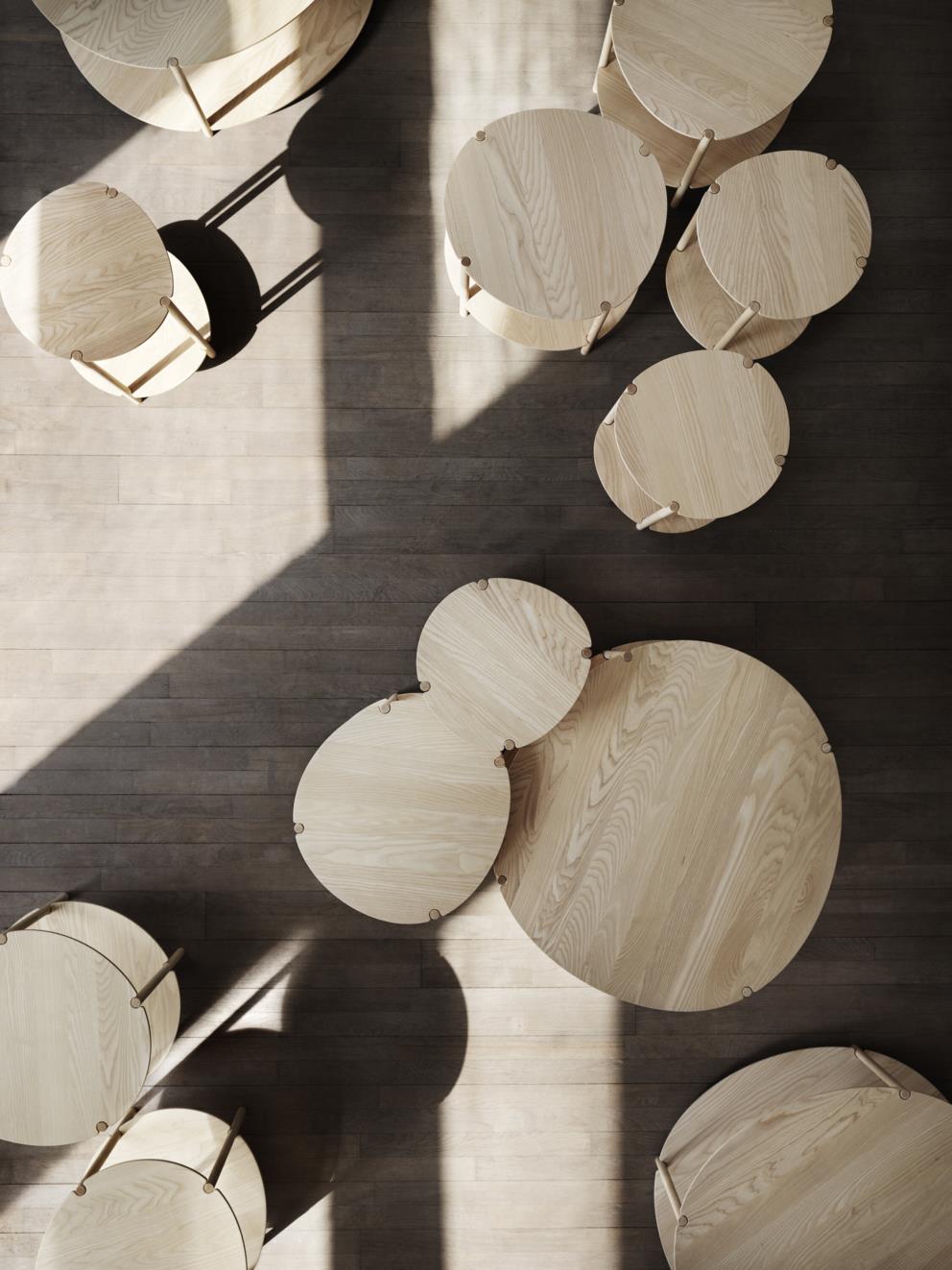 Charakter stolu Lunaria vychází z užití měkkého hřejivého dřeva a jeho subtilní stolové desky nepravidelného kulatého tvaru.