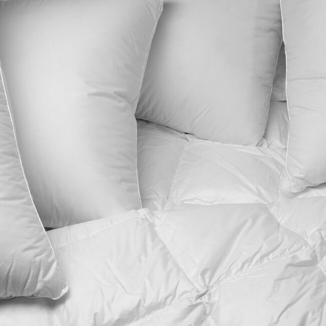 Přehozy na postel, péřové výrobky a kvalitní ložní prádlo.