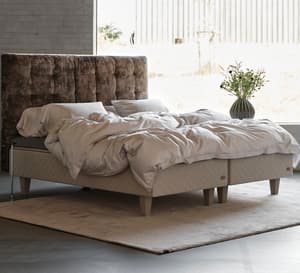 Lůžko DUX pověstné svým pohodlím a originálním nízkým profilem s dynamickou konstrukcí dvou vrstev pružin.