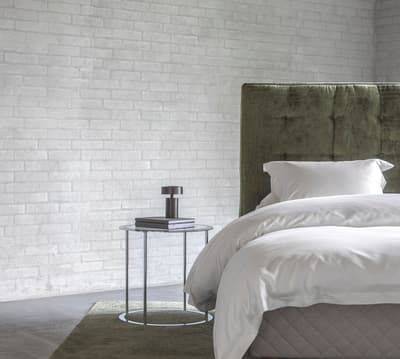 Postelové čelo s měkčím polstrováním, prošíváním nebo knoflíky.