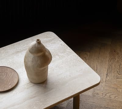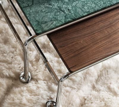 Nižší stolek Domus je vyrobený z exkluzivních materiálů, které dokonale ladí se dřevem.