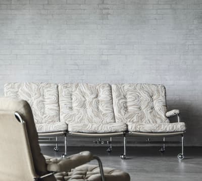 3místná pohovka ideální velikosti vycházející z klasického křesla Karin 73 je navržena pro snadné přemístění kamkoli.
