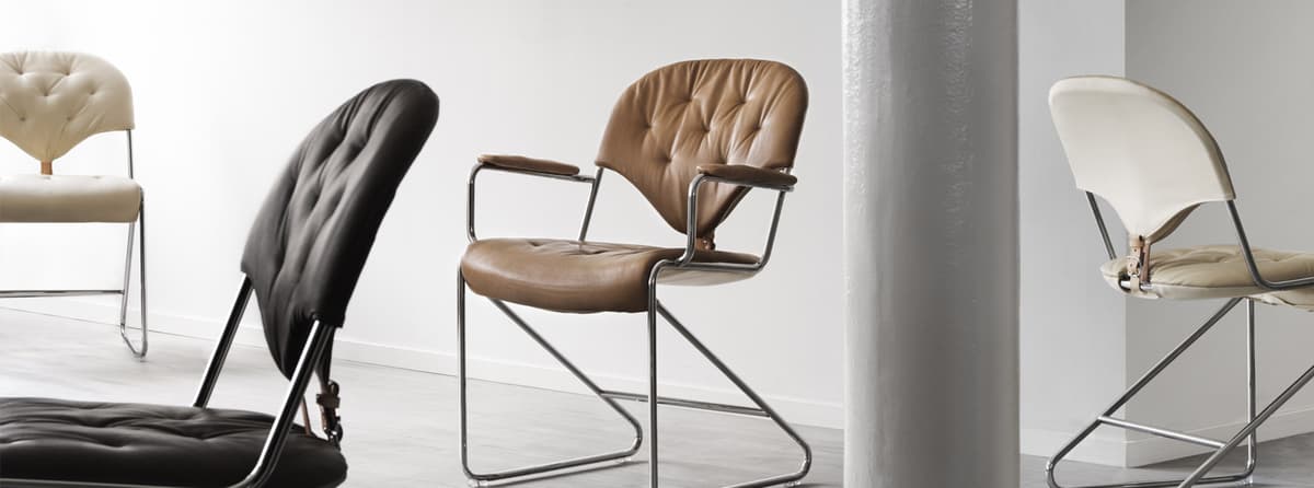 Klasické křeslo navržené Samem Larssonem se hodí k jídelnímu stolu i do kanceláře.
