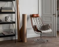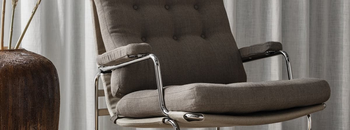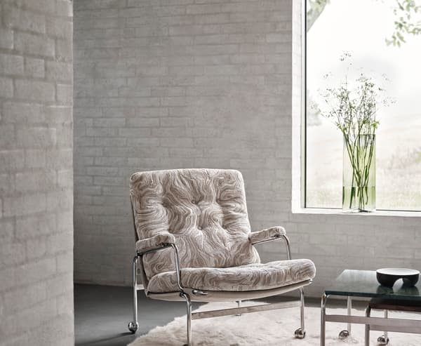 Relaxační křeslo Karin v klasickém designu Bruna Mathssona nabízí elegantní posezení s rámem z kvalitního chromu a polštářem s hlubokým prošíváním.