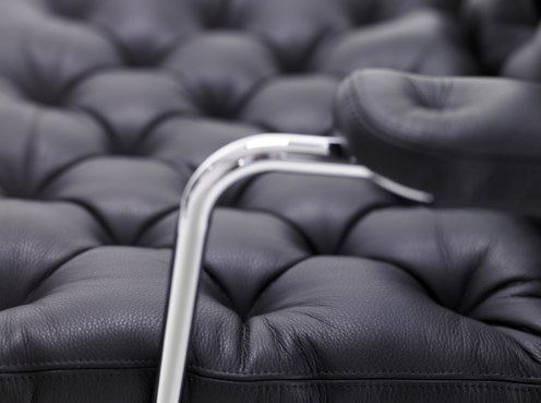 Relaxační křeslo Karin v klasickém designu Bruna Mathssona nabízí elegantní posezení s rámem z kvalitního chromu a polštářem s hlubokým prošíváním.