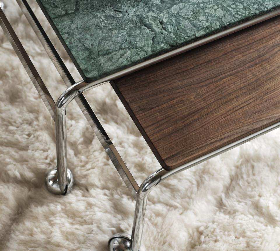 Nižší stolek Domus je vyrobený z exkluzivních materiálů, které dokonale ladí se dřevem.