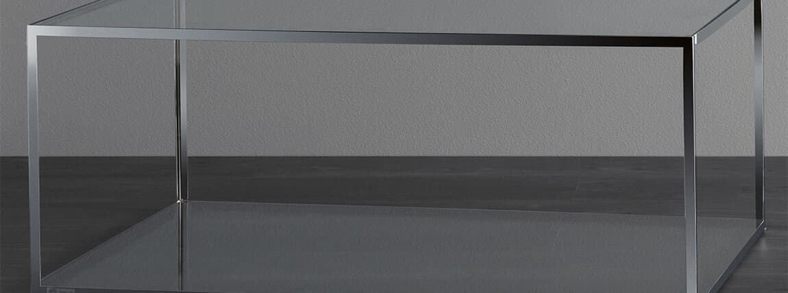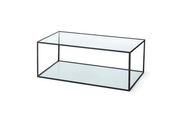 Klasický stůl se vyznačuje rámem čtvercového nebo obdélníkového tvaru vyrobeným z chromu nebo černého kovu a skleněnou horní i spodní deskou.