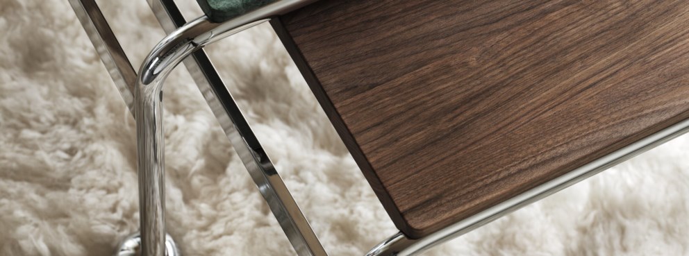 Tento model založený na originálním stolku navrženém Brunem Mathssonem jako doplněk k jeho klasickému křeslu nabízí největší povrchovou plochu při zachování elegantní estetiky tak typické pro kolekci Karin. Na chromovaném rámu spočívá horní deska z luxusního mramoru, vápence nebo ořechu.