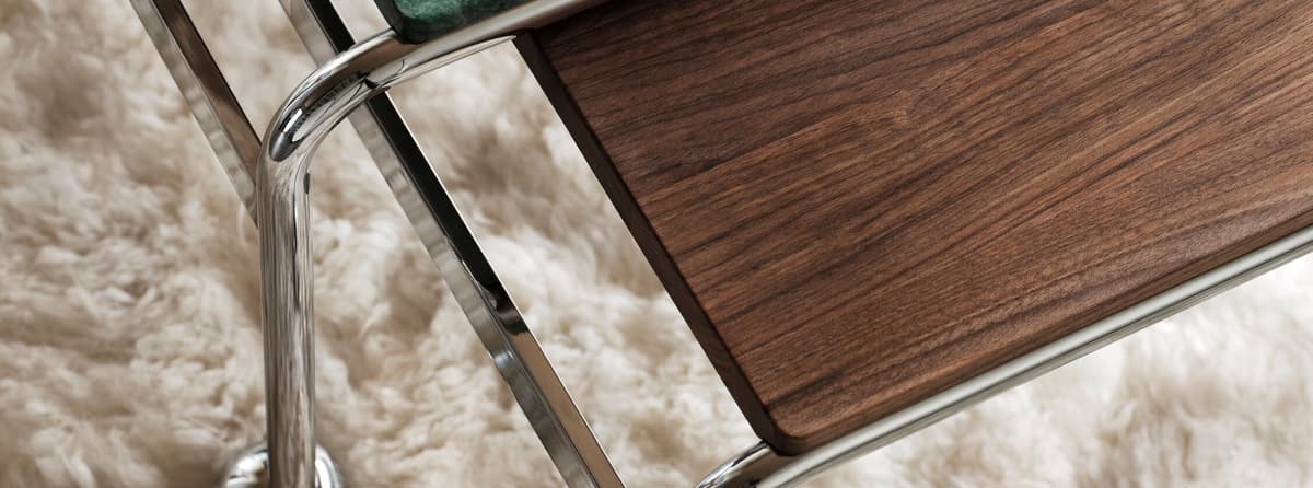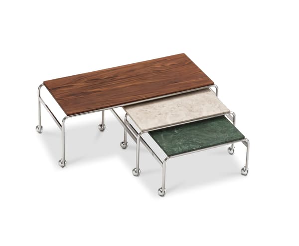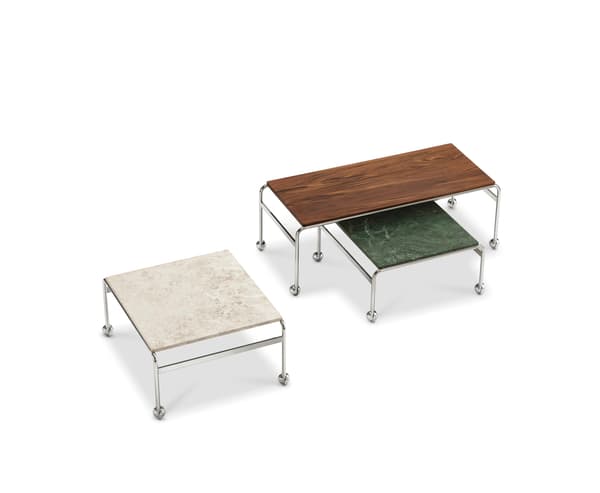 Tento model založený na originálním stolku navrženém Brunem Mathssonem jako doplněk k jeho klasickému křeslu nabízí největší povrchovou plochu při zachování elegantní estetiky tak typické pro kolekci Karin. Na chromovaném rámu spočívá horní deska z luxusního mramoru nebo ořechu.