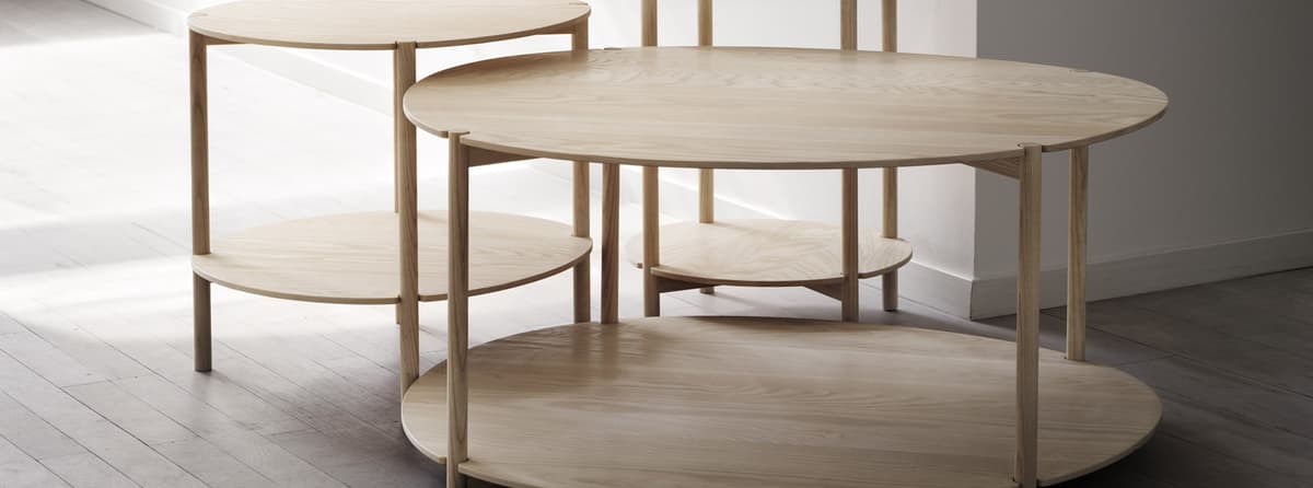 Všestranný nízký stůl s jemnými liniemi a hřejivým dřevem.